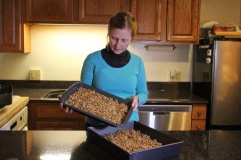5. Faire griller au four à 250 Fahrenheit ( 120 celsius ) jusqu'à ce que le granola est sec croquants, en remuant toutes les 25 minutes.