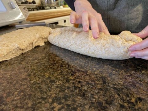 Clicking on the Shaping Bread Dough link will bring you to a gallery of pictures showing how the dough is shaped prior to placing it in a bread pan for baking.